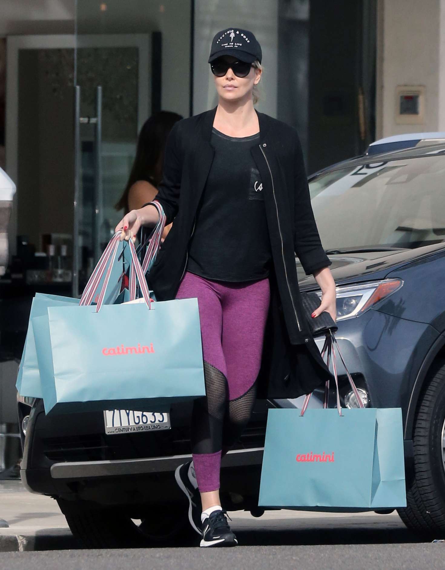 Charlize Theron in Tights Shopping in Beverly Hills
