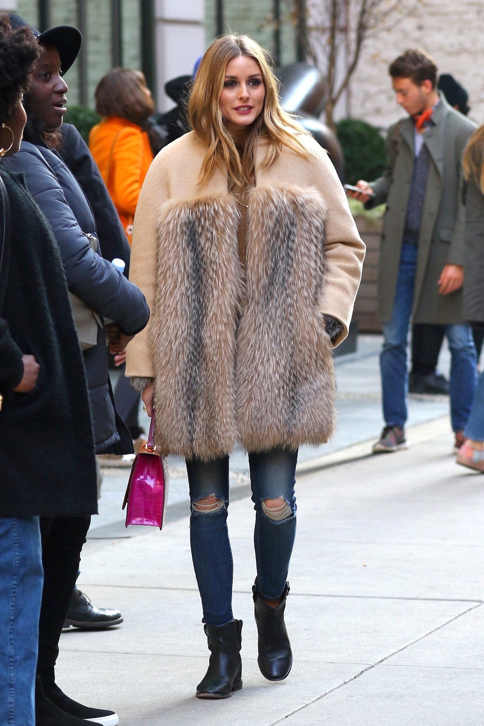 Olivia Palermo Wearing a Fur Coat Out in New York