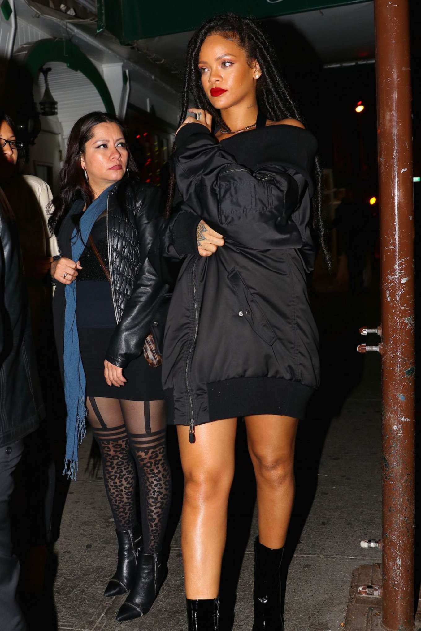 Rihanna in Black Jacket Ninght Out in New York